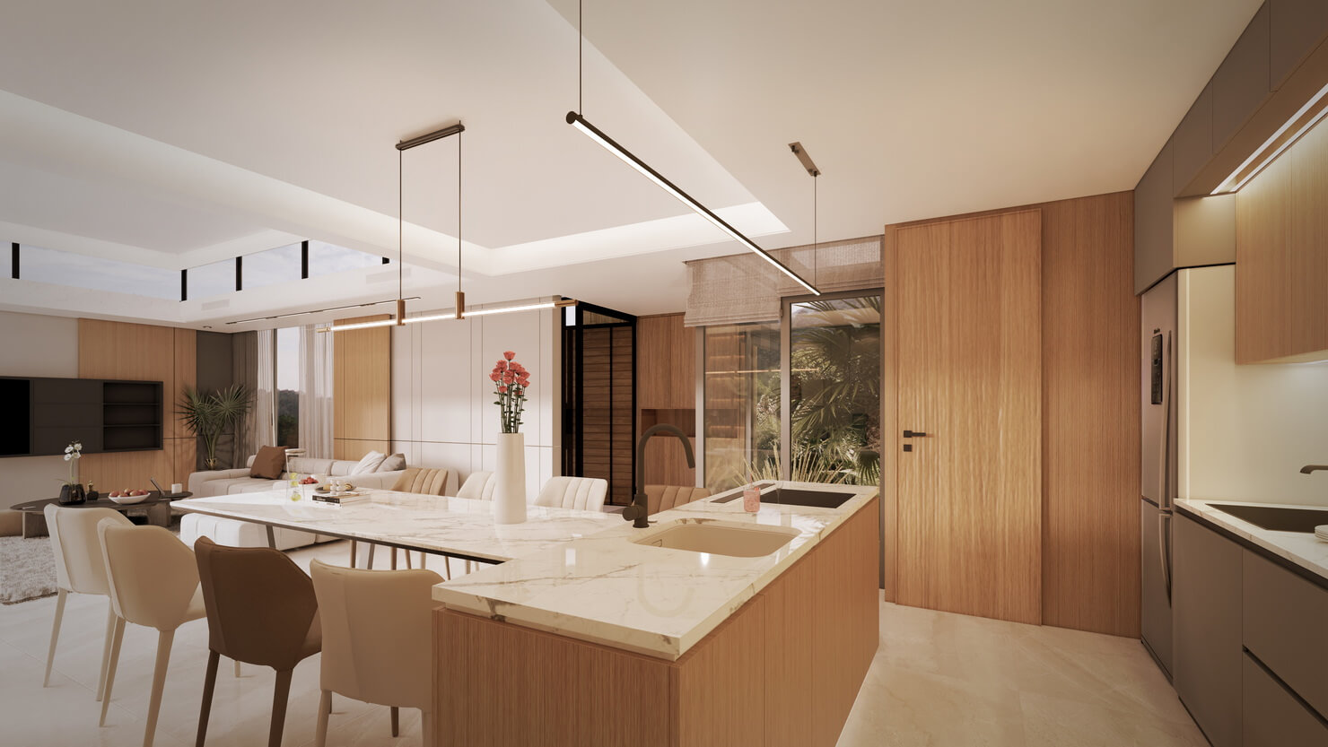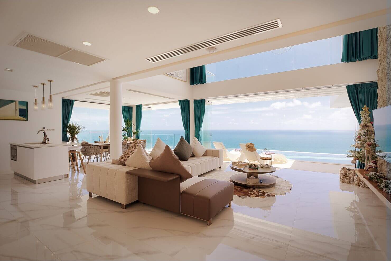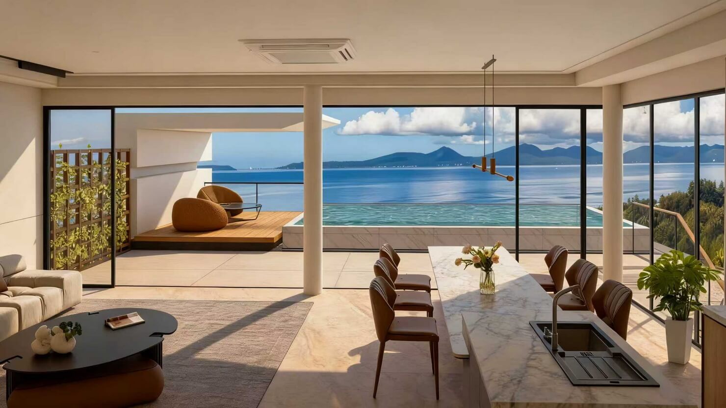 A design philosophy that seamlessly blurs the boundary between refined indoor living and the natural coastal landscape. Floor-to-ceiling glazing and infinity elements invite sweeping ocean horizons, while climate-responsive architecture harnesses natural sea breezes for passive cooling — creating residences that are as environmentally intelligent as they are visually stunning.